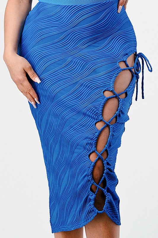 Sleeveless Open Thigh Bodycon Ocean Blue Dress